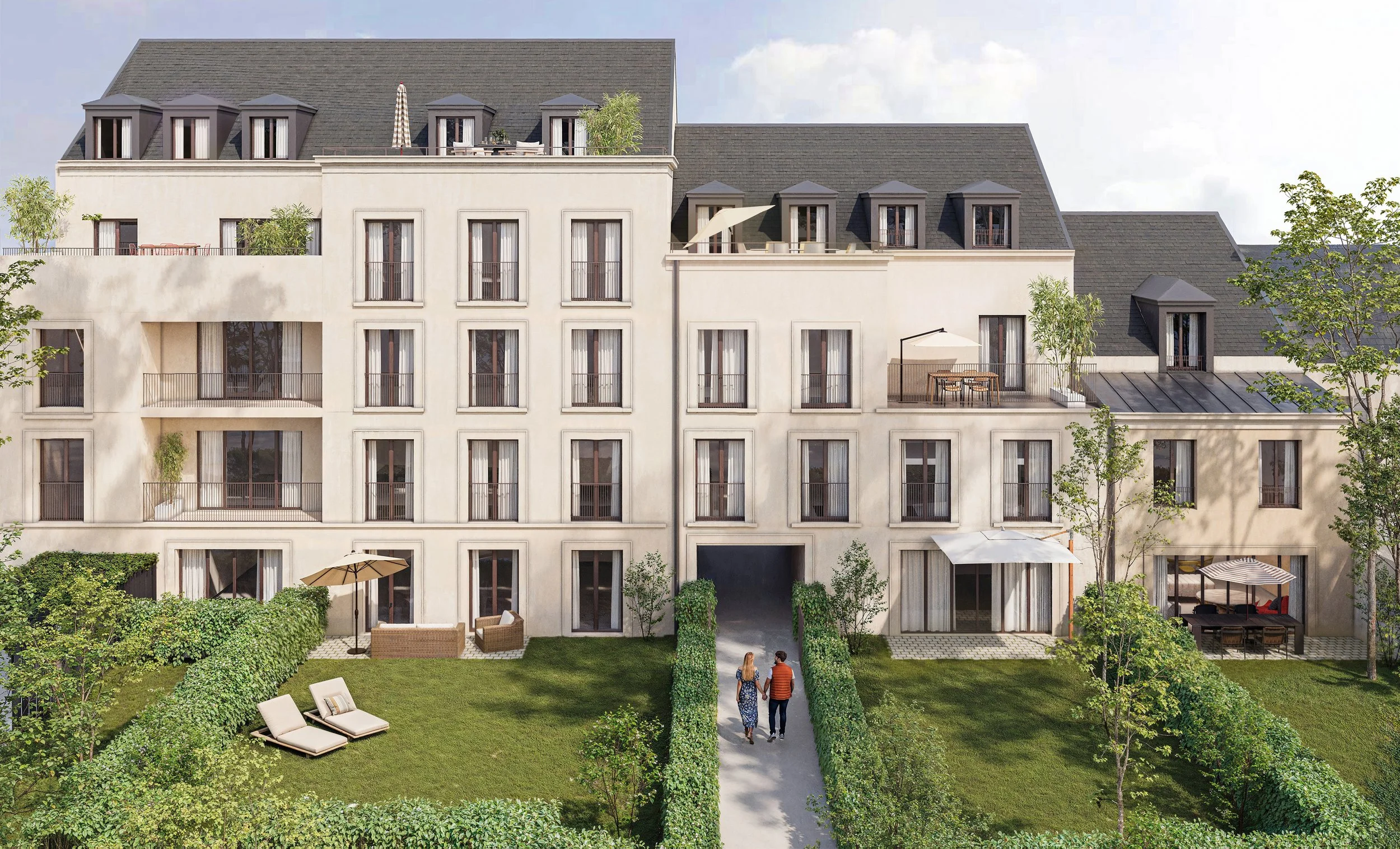 La résidence se distingue par son positionnement haut de gamme et son atmosphère intimiste. L’architecture, soignée et parfaitement intégrée à son environnement, met en valeur des matériaux de qualité et des lignes sobres. Les appartements bénéficient d’espaces extérieurs généreux, terrasses et jardins, un privilège particulièrement rare à Versailles. Les maisons, quant à elles, offrent un cadre de vie exclusif, alliant volumes confortables et intimité préservée.